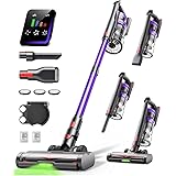 Powerffy Akku Staubsauger 600W/50KPa/65Min, Staubsauger Kabellos mit HD-Display, Aromatherapie, 1,8L-Staubbehälter, Akkustaubsauger grünem LED-Licht Bürste für Teppiche, Hartböden und Tierhaare