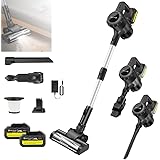 Qimu Akku Staubsauger 500W 45000Pa 45Min Akkustaubsauger Kabellos mit Licht, Anti-Tangle-Bürste, Superleise Selbststehend Akkusauger für Tierhaare Teppiche Hartböden (Akku Staubsauger mit 2 Akku)