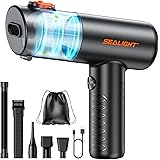 SEALIGHT Handstaubsauger, 32000Pa Mini Akku Staubsauger Kabellos, 1-Knopf-Selbstentleerung mit Bürstenlosem Motor de 400000 RPM, Mini Staubsauger Ideal für Tierhaare, Auto, Haushalt